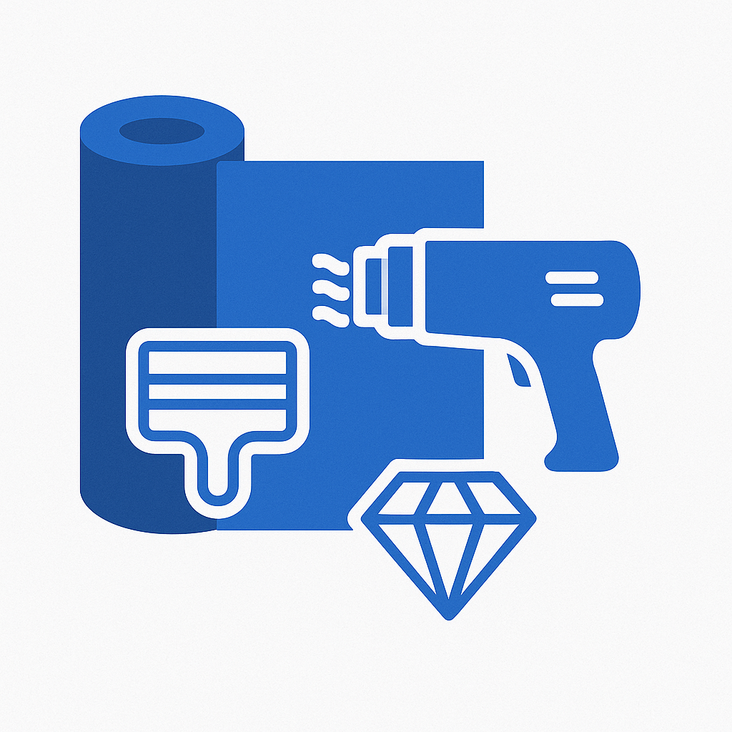 Pracujemy na profesjonalnych narzędziach i korzystamy z zaawansowanych technik aplikacji termicznej oraz bezbąbelkowej. Używamy opalarek z regulacją temperatury, rakli z mikrofibry i systemów docinania bezpośrednio na powierzchni, co pozwala na perfekcyjne dopasowanie folii nawet do nieregularnych kształtów.