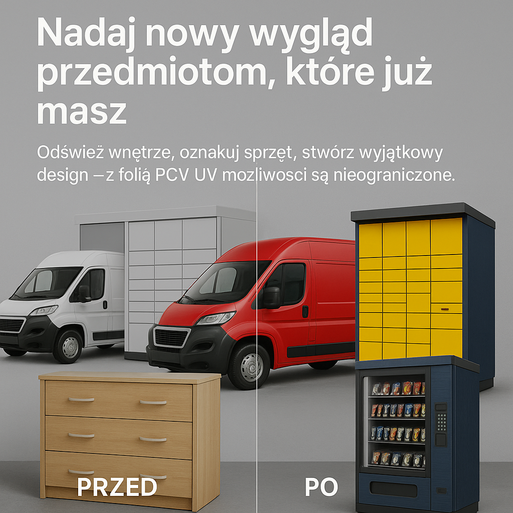 Każda powierzchnia to dla nas nowe wyzwanie, a każda realizacja – dowód na to, że folia PCV UV może całkowicie odmienić wygląd nawet najbardziej niepozornego przedmiotu. Działamy z precyzją, pomysłem i pasją do estetyki.